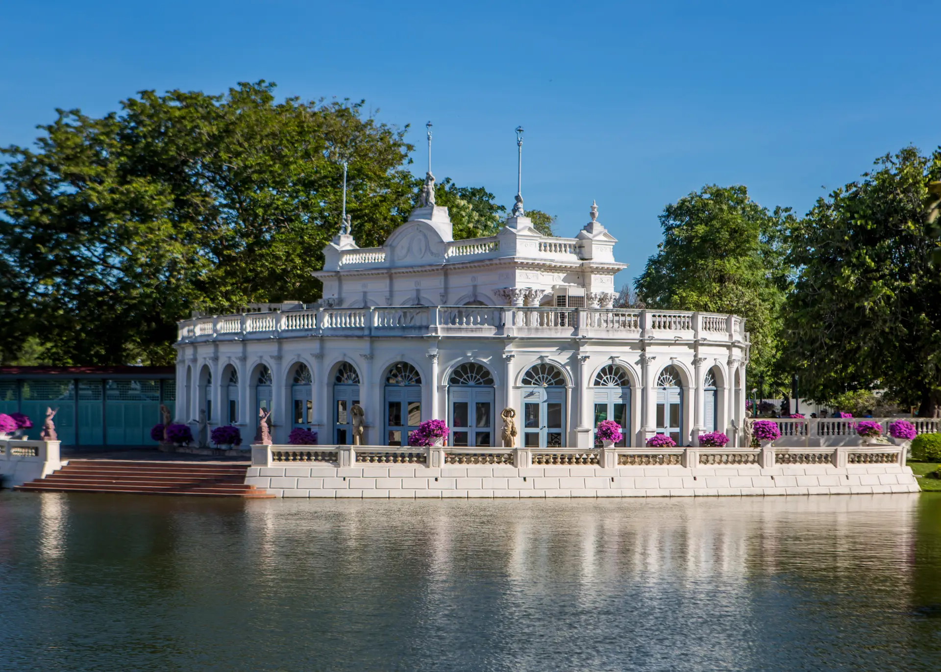 Bang Pa-In glitters—water, marble, gold leaf, and lush gardens. A circular polarizer tames glare on ponds and gilding, bringing texture to architecture and greenery; a variable ND lets you slow the scene—turn strolling visitors into ghostly motion, fountains into silk, and river shimmer into smooth serenity beneath palace arches.