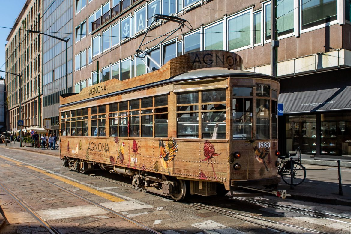 🎬 Street shots of yellow trams clattering past Brera’s stone façades.