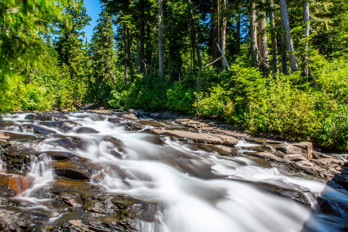 A short walk from Paradise puts you at a perfect bridge vantage. Compose verticals to include wildflower skirts; try a 1/4–1 sec exposure for silky water and keep the mountain in the pocket of the frame.