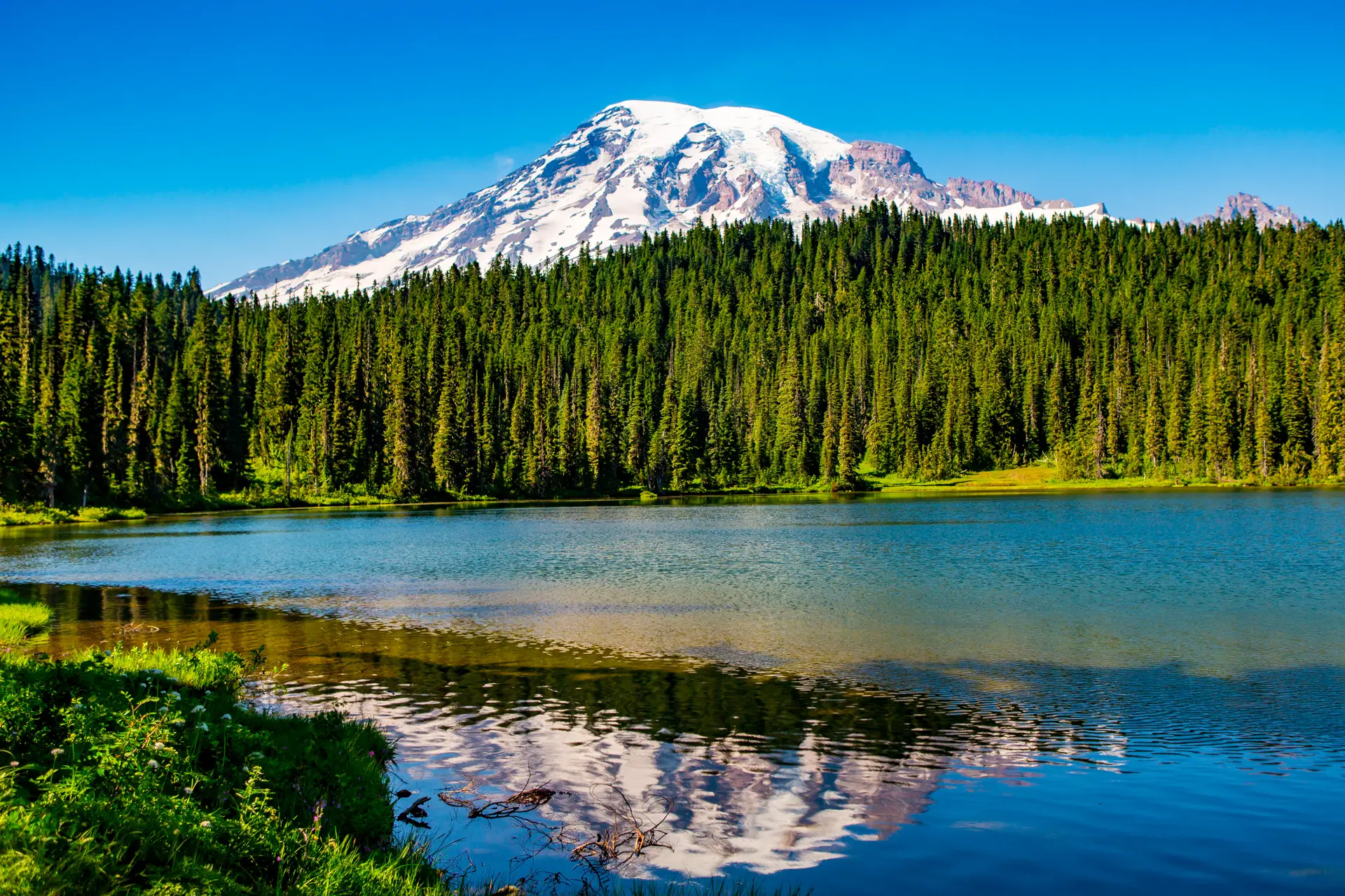 A classic for a reason: when the wind naps, Mount Rainier sits perfectly in the water like a painted postcard. Compose low for foreground wildflowers in July–August, or use lingering ice patterns in June for texture. Watch for headlight trails after sunset if you love a glint of motion in your frame.